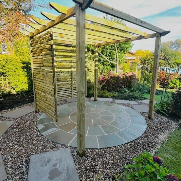 Add character to your patio with our natural stone circle. It looks very lovely after it is laid and not only adding a character but gives you a warm and relaxed feeling seeing it in your patio. You can use all your imagination by adding a circle and creating a path to it as a little get away within your own garden. You can achieve a very mediterranean look within your house. Our Natural Stone is high quality for your Patios, Garden Paving and Landscaping Projects from Direct Importers. All our products are suitable for British Weather conditions and they are frost resistant. We can also do Split Packs to match you exact meterage so you don't need to order extra and waste it - Split Pack Fee Applies*.