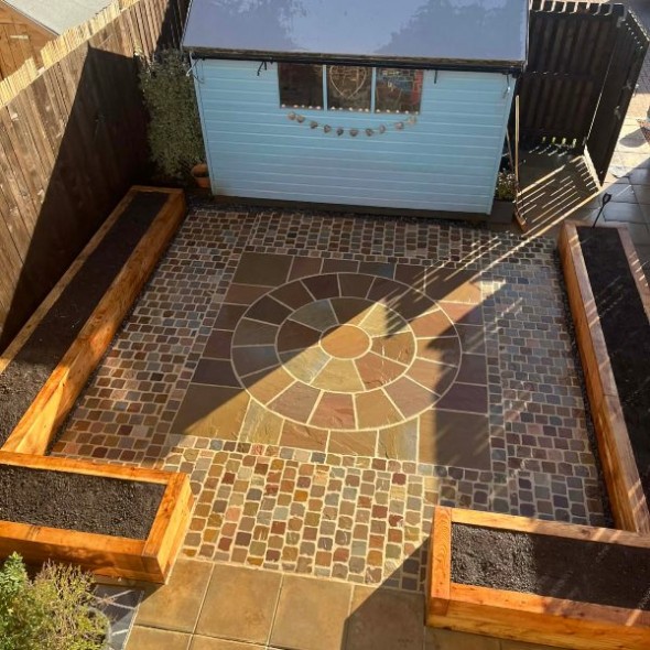 Add character to your patio with our natural stone circle with a squaring off kit on top. It looks very lovely after it is laid and not only adding a character but gives you a warm and relaxed feeling seeing it in your patio. You can use all your imagination by adding a circle and creating a path to it as a little get away within your own garden. You can achieve a very mediterranean look within your house. Our Natural Stone is high quality for your Patios, Garden Paving and Landscaping Projects from Direct Importers. All our products are suitable for British Weather conditions and they are frost resistant. We can also do Split Packs to match you exact meterage so you don't need to order extra and waste it - Split Pack Fee Applies*.