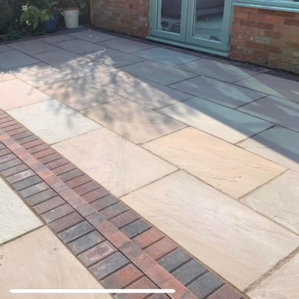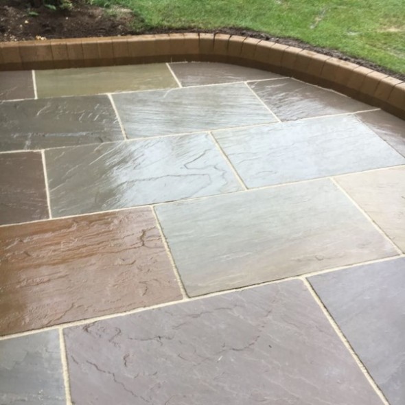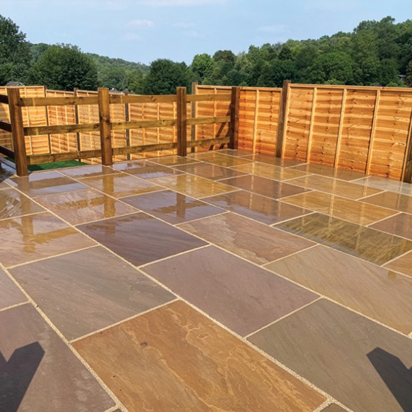 Autumn Blend Sandstone 600x900 Single Size calibrated - It gives a very natural warm look to the patio because of the autumn shades blended in beautifully. It originates from India. It undergoes a Machine technique (i.e) a process of Calibration which gives a line finish on bottom of stone to even out thickness of slabs to 22mm with hand cut edges. Our Natural Stone is high quality for your patios, garden paving and landscaping projects from direct importers. All our products are suitable for British weather conditions and they are frost resistant. We can also do split packs to match you exact meterage so you don't need to order extra and waste it - Split Pack Fee Applies*.