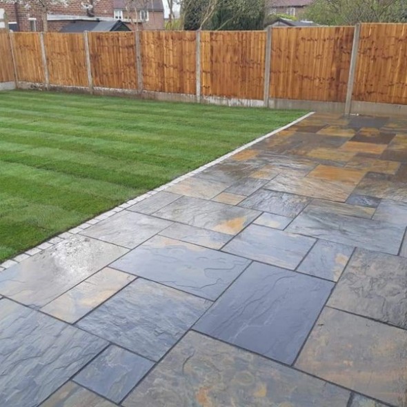 Rustic Slate 600 Series 4 Mixed Sizes Machine Cut Riven slate - It is natural slate that originated from India. Premium quality product that looks very stylish and contemporary after it has been laid out. It undergoes a Machine technique (i.e) a process of Calibration which gives a line finish on bottom of stone to even out thickness of slabs to 18 to 22 mm with Sawn edges. All our products are suitable for British Weather conditions and they are frost resistant. We can also do Split Packs to match you exact meterage so you don't need to order extra and waste it - Split Pack Fee Applies*.