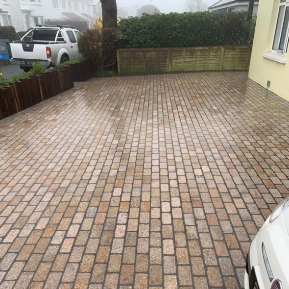 Yellow Granite Tumbled Setts 200x100x50mm Thick with a flamed surface. With this stunning tumbled block you can create an absolutely stunning driveways and pathways. These blocks can also be used for edging patios. The granite setts are tumbled on 5 sides and flamed on surface to give anti slip properties. Split packs available
