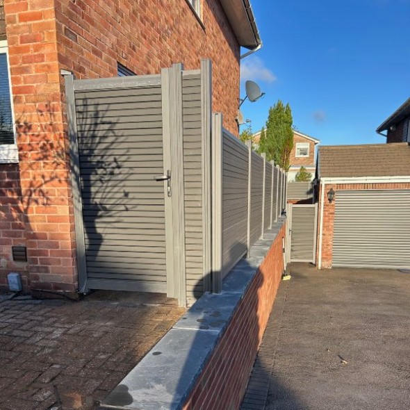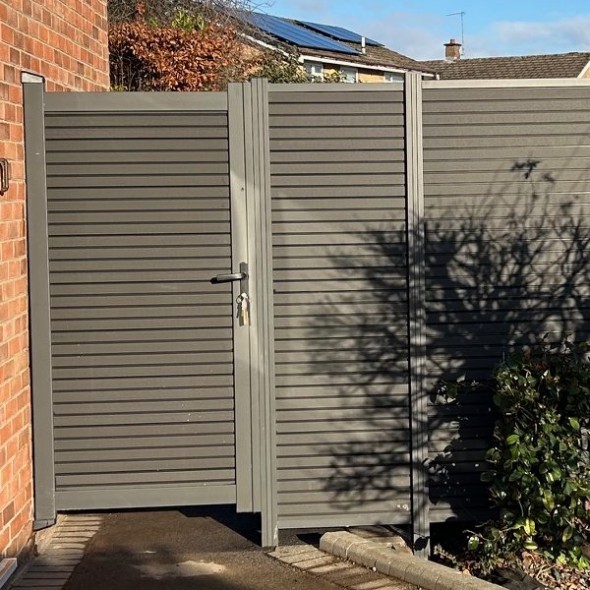 The Slatted Composite Gate is expertly crafted from aluminium.