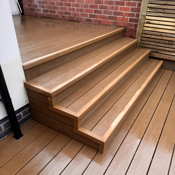 Our new and improved Light Oak composite decking has a garden enhancing 3D wood grain effect written directly into the surface of the boards. Composite decking is easy to install for both professionals and inexperienced homeowners. It needs a minimal maintenance across its lifetime.