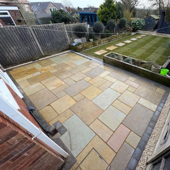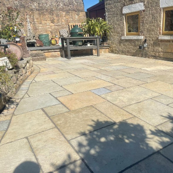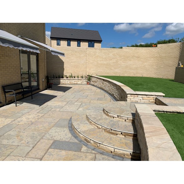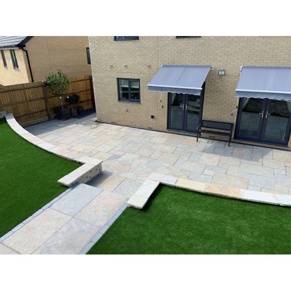 Yellow Limestone Or Honey Limestone 600 Series 4 Mixed Sizes Hand-cut Cut edges - A very traditional looking yellow limestone that makes your patio stand out. It originates from India. It looks a bit like a weathered yellow colour and also called as Tuscany. 4 different sizes patio packs. It undergoes a Machine technique (i.e) a process of Calibration which gives a line finish on bottom of stone to even out thickness of slabs to 22mm with hand-cut edges. High Quality stone from direct importers. Our Natural Stone is high quality for your Patios, Garden Paving and Landscaping Projects from Direct Importers. All our products are suitable for British Weather conditions and they are frost resistant. We can also do Split Packs to match you exact meterage so you don't need to order extra and waste it - Split Pack Fee Applies*.