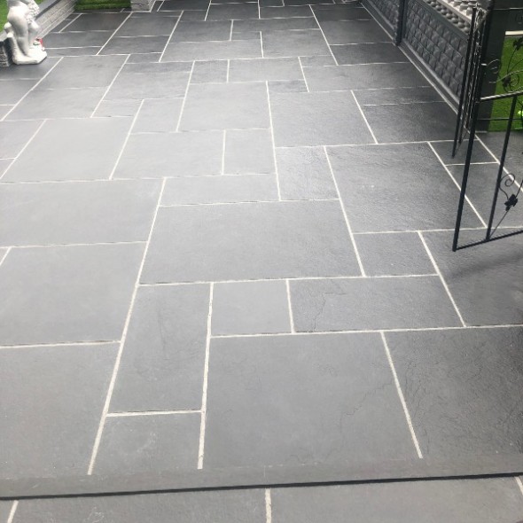 Black limestone Paving is a very popular limestone that is very dark charcoal greyish black in colour to achieve a Contemporary looking patio with straight sawn edges to add the wow factor. It originates from a place called Kadapa in India hence it is also sometimes refered to as Kadapa Black. The colours are only a reference and because of the nature of natural stone, there may be slight colour variation with tones and patterns.