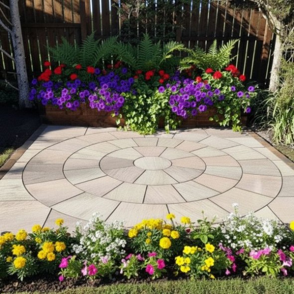 Add character to your patio with our porcelain circle with a squaring off kit on top. These circle kits add add the perfect finishing touches to any up and coming garden and create a stunning focus point. Our porcelain is high quality for your Patios, Garden Paving and Landscaping Projects from Direct Importers. All our products are suitable for British Weather conditions and they are frost resistant. We can also do Split Packs to match you exact meterage so you don't need to order extra and waste it - Split Pack Fee Applies*.
