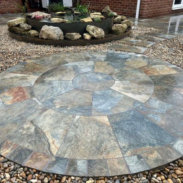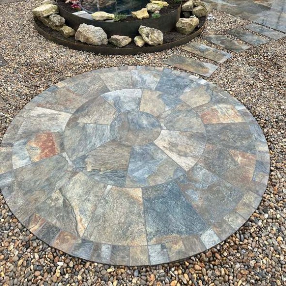 Add character to your patio with our porcelain circle with a squaring off kit. These circle kits add add the perfect finishing touches to any up and coming garden and create a stunning focus point. Our porcelain is high quality for your Patios, Garden Paving and Landscaping Projects from Direct Importers. All our products are suitable for British Weather conditions and they are frost resistant. We can also do Split Packs to match you exact meterage so you don't need to order extra and waste it - Split Pack Fee Applies*.