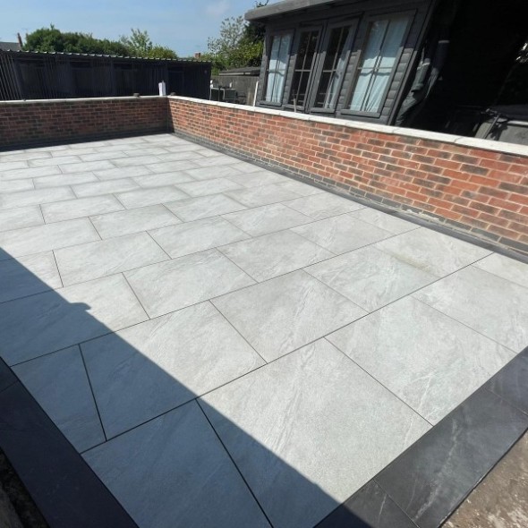 Lava Grey Porcelain is a light grey slab with light veins, blended beautifully with warmer tones to resemble natural paving. Our Lava Grey porcelain will make any garden or patio stand out and give it a classy and elegant feel. The images are only to be used as a reference as there may be a slight colour variation in tones and patterns. We highly recommend our Porcelain range for any bespoke projects due to it being ideal for indoors as well as outdoors and a perfect choice around swimming pools. Our Porcelain is a high quality, vitrified product from direct importers, perfect for your patios, garden paving, and landscaping projects. All our products have been expertly tested to withstand all British weather conditions and are frost resistant. We offer a split pack service to match your exact measurements. Split pack fee applies*