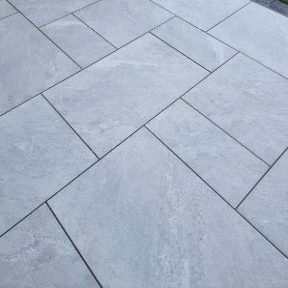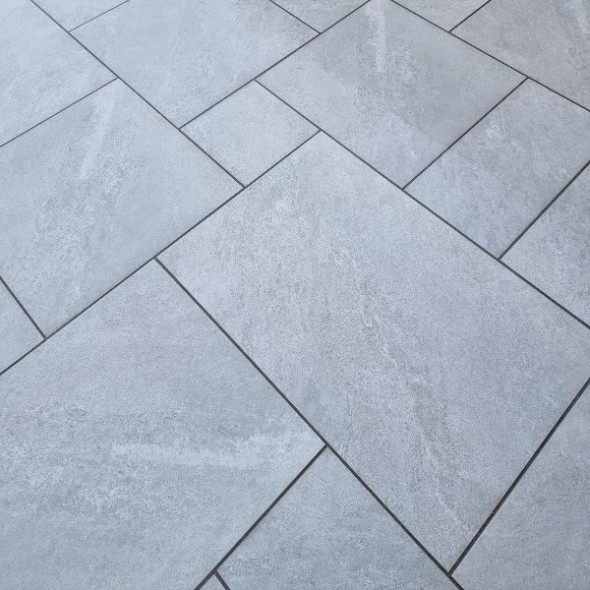 Smoke Grey Vitrified porcelain Mix sizes patio packs is ideal for a refreshingly modern look of very light grey with veins. The colours are only a reference and there may be slight colour variation with tones and patterns.
