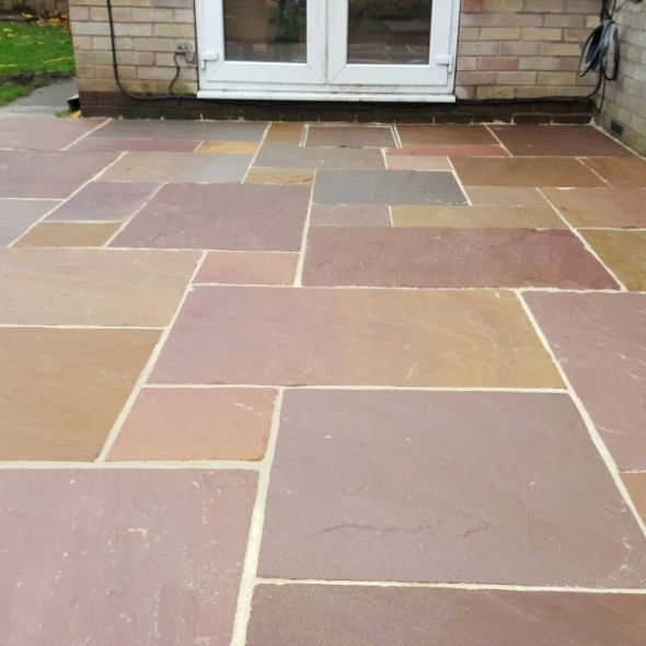 Modak 600 Series 4 Mixed Sizes Machine Cut - A very warm looking can be achieved by the Modak colour. The word Modak means sweet dumpling in India which is what the stone is called as it looks very nice after its laid. The pack gives 18.9m2 coverage and has 4 different sizes. It undergoes a Machine technique (i.e) a process of Calibration which gives a line finish on bottom of stone to even out thickness of slabs to 22mm with hand cut edges. Our Natural Stone is high quality for your Patios, Garden Paving and Landscaping Projects from Direct Importers. All our products are suitable for British Weather conditions and they are frost resistant. We can also do Split Packs to match you exact meterage so you don't need to order extra and waste it - Split Pack Fee Applies*.