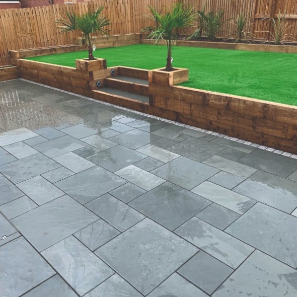 Slate 600 Series 3 Mixed Sizes Hand Cut - It is natural slate that originated from Brazil. Premium quality product that looks very stylish and contemporary after it has been laid out. The pack gives 18.9 m2 coverage and has 3 different sizes. It is Hand Cut so the thickness of the slabs will vary. Our Natural Stone is high quality for your Patios, Garden Paving and Landscaping Projects from Direct Importers. All our products are suitable for British Weather conditions and they are frost resistant. We can also do Split Packs to match you exact meterage so you don't need to order extra and waste it - Split Pack Fee Applies*.