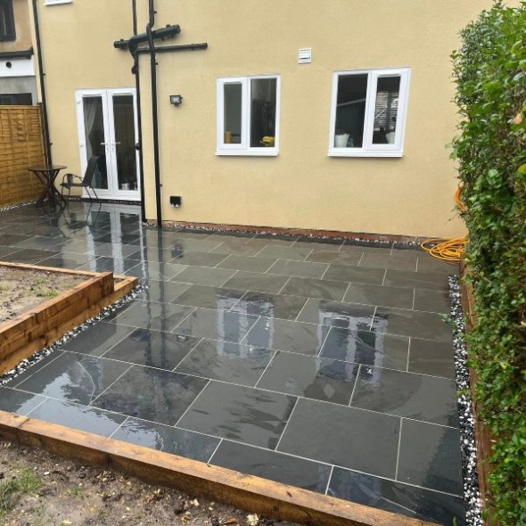 Slate Single Size 600x600 - It is natural slate that originated from Brazil. Premium quality product that looks very stylish and contemporary after it has been laid out. The pack gives 18m2 coverage and has single size 600x600. It is Hand Cut so the thickness of the slabs will vary between 18-22 mm. Our Natural Stone is high quality for your Patios, Garden Paving and Landscaping Projects from Direct Importers. All our products are suitable for British Weather conditions and they are frost resistant. We can also do Split Packs to match you exact meterage so you don't need to order extra and waste it - Split Pack Fee Applies*.