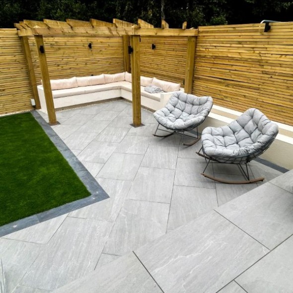 Our Silver Kandla Grey Porcelain has a very modern appearance with light grey veins running through the tiles and an anti-slip textured surface, making this product a luxurious choice for any garden. We highly recommend our Porcelain range for any bespoke projects due to it being ideal for indoors as well as outdoors and a perfect choice around swimming pools. Our Porcelain is a high quality, vitrified product from direct importers, perfect for your patios, garden paving, and landscaping projects. All our products have been expertly tested to withstand all British weather conditions and are frost resistant. We offer a split pack service to match your exact measurements.