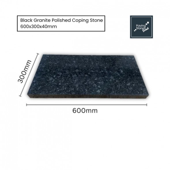 Brand New product - Our Polished Black Granite wall copings add a nice decorative finish to any stone wall and really adds the wow factor to inside your home or garden projects. They have Drip Grooves cut in along the 600mm length on the underside as well as a Chamfered topside edge on the 600mm length.